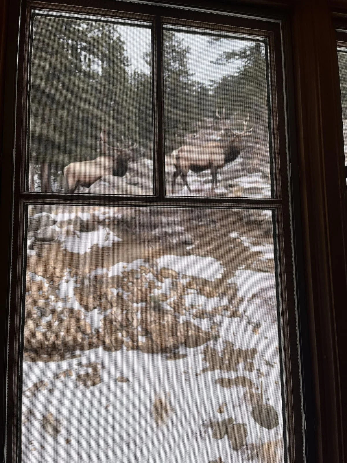 Keep Your Distance! – Don’t approach animals. Stay 75 feet from elk/deer, 120 feet from moose/bears. (In our experience the wildlife passing by on our property ignore us as we ignore them!)